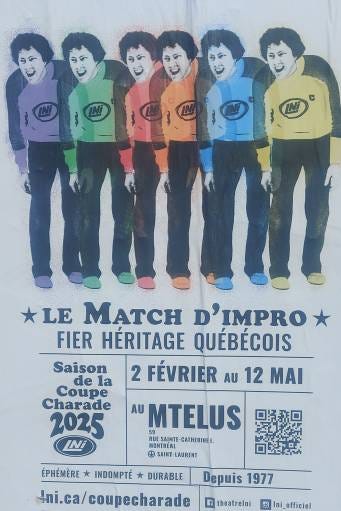 C’est en effet à Montréal, en 1977 qu’est né le “Match d’Impro” où deux groupes de comiques s’affrontent. 1977-2025, presque cinquante ans d’histoire !
